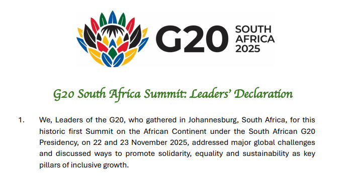 二十國集團(G20)領導人第二十次峰會當?shù)貢r間11月22日在南非約翰內(nèi)斯堡開幕。南非國際關(guān)系與合作部長羅納德·拉莫拉在當天下午召開的記者發(fā)布會上表示,與會各方已就會議核心議程達成共識,并通過了《二十國集團領導人約翰內(nèi)斯堡峰會宣言》。