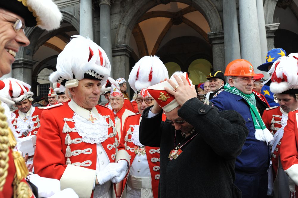 2012年2月20日,科隆市長(zhǎng)羅特斯(左二)在科隆狂歡節(jié)上。(班瑋 攝)