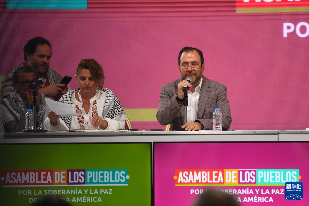 12月9日,委內(nèi)瑞拉外交部長(zhǎng)希爾(右)在首都加拉加斯舉行的“美洲主權(quán)與和平人民大會(huì)”開(kāi)幕式上發(fā)表講話。新華社發(fā)(馬科斯·薩爾加多攝)