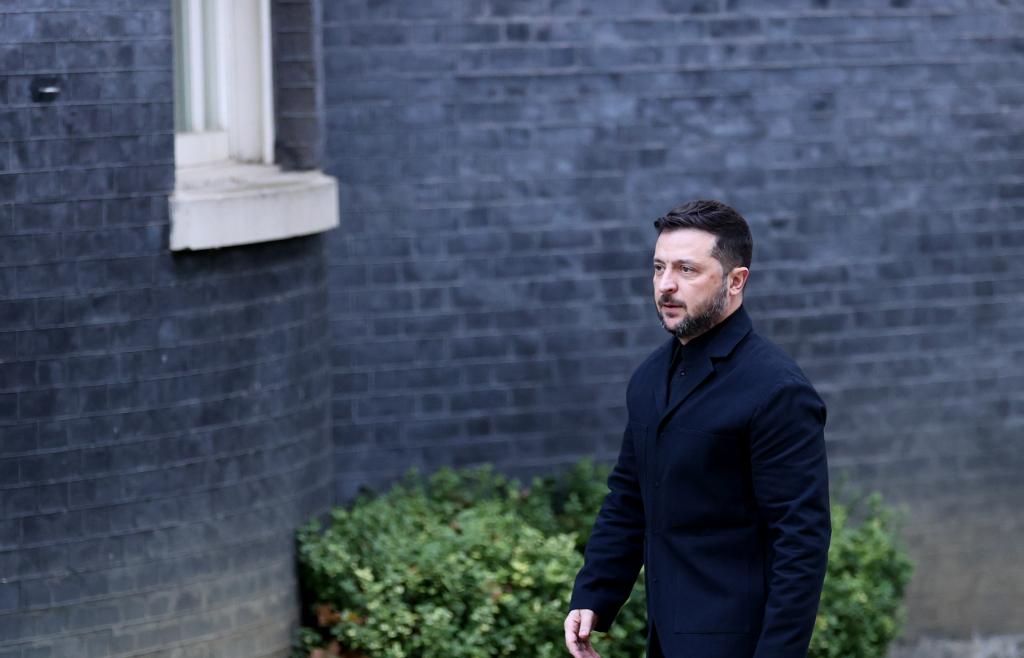 10月24日,在英國倫敦,烏克蘭總統(tǒng)澤連斯基走向唐寧街10號首相府。新華社記者李穎攝