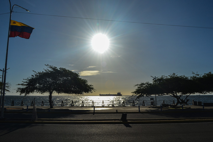 2025年12月23日,一艘油輪停泊在委內(nèi)瑞拉蘇利亞州馬拉開(kāi)波湖上。當(dāng)?shù)啬繐粽呷涨跋蛐氯A社透露,23日在該國(guó)西部馬拉開(kāi)波湖這一核心產(chǎn)油區(qū),仍可見(jiàn)油輪正在等待出?;虼┻^(guò)拉斐爾·烏達(dá)內(nèi)塔將軍大橋進(jìn)入巴霍格蘭德港口。新華社發(fā)
