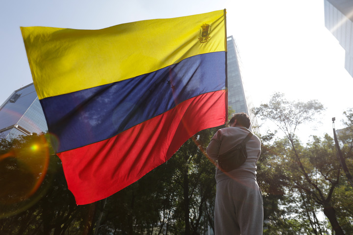 2026年1月10日,在墨西哥首都墨西哥城,當?shù)孛癖妳⒓邮就顒印.斎?,部分墨西哥民眾在墨西哥城舉行示威活動,抗議美國對委內(nèi)瑞拉發(fā)動軍事打擊。新華社發(fā)(弗朗西斯科·卡涅多攝)