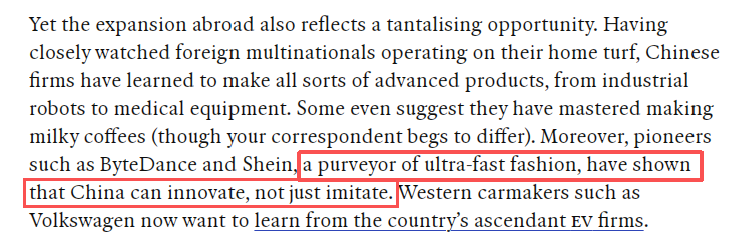 文章最后說(shuō),未來(lái)全球消費(fèi)者或?qū)㈠忮烁嘀袊?guó)品牌。