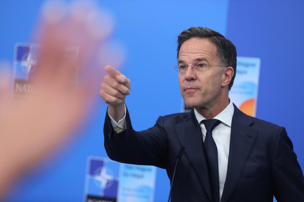 2025年6月25日,在荷蘭海牙,北約秘書長呂特在北約峰會期間對媒體記者講話。新華社記者 趙丁喆 攝