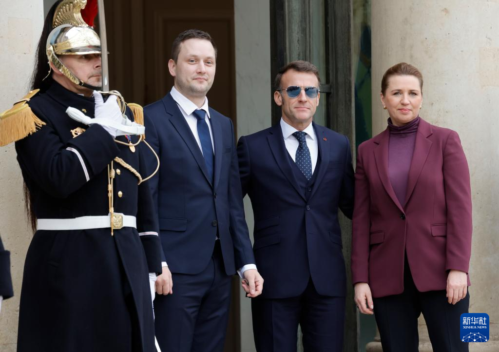 1月28日,法國總統(tǒng)馬克龍(右二)在巴黎歡迎到訪的丹麥首相弗雷澤里克森(右一)和格陵蘭島自治政府總理延斯-弗雷德里克·尼爾森(左二)。新華社發(fā)(亨利·施瓦茨攝)