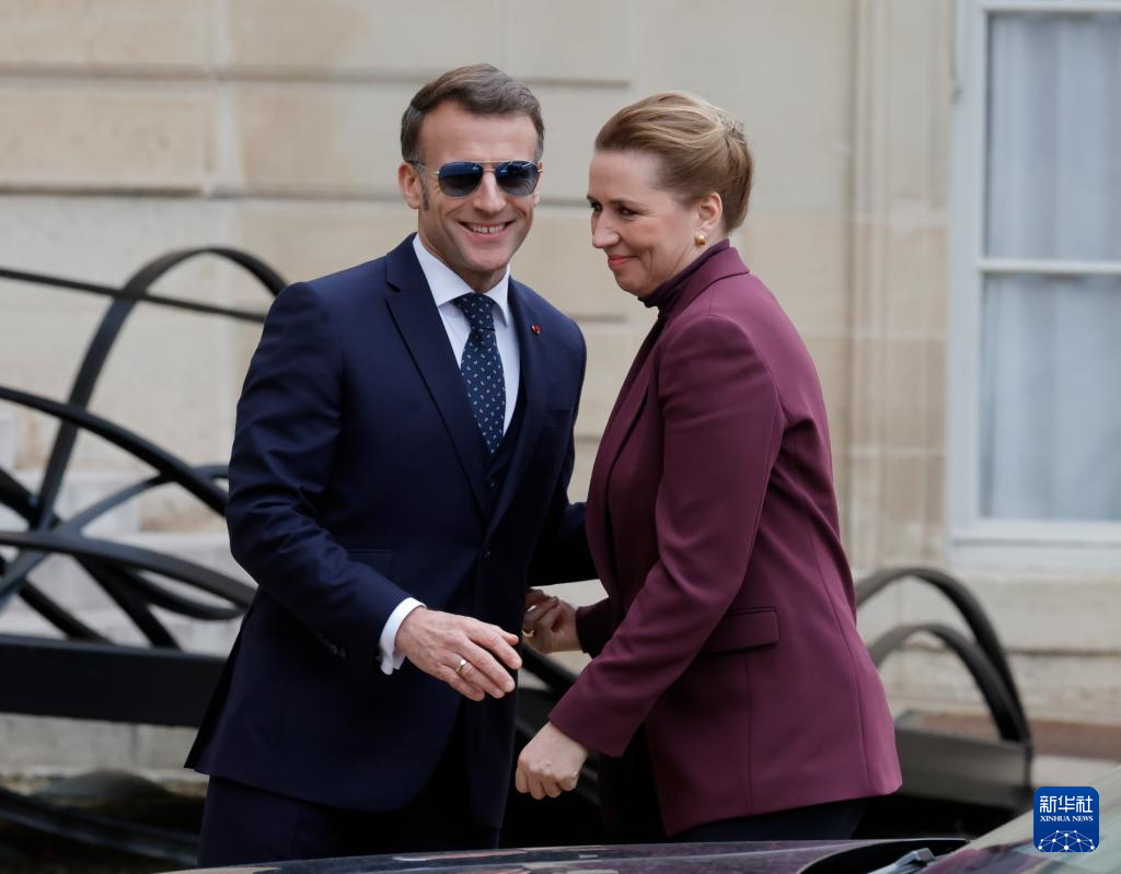 1月28日,法國總統(tǒng)馬克龍(左)在巴黎歡迎到訪的丹麥首相弗雷澤里克森。新華社發(fā)(亨利·施瓦茨攝)