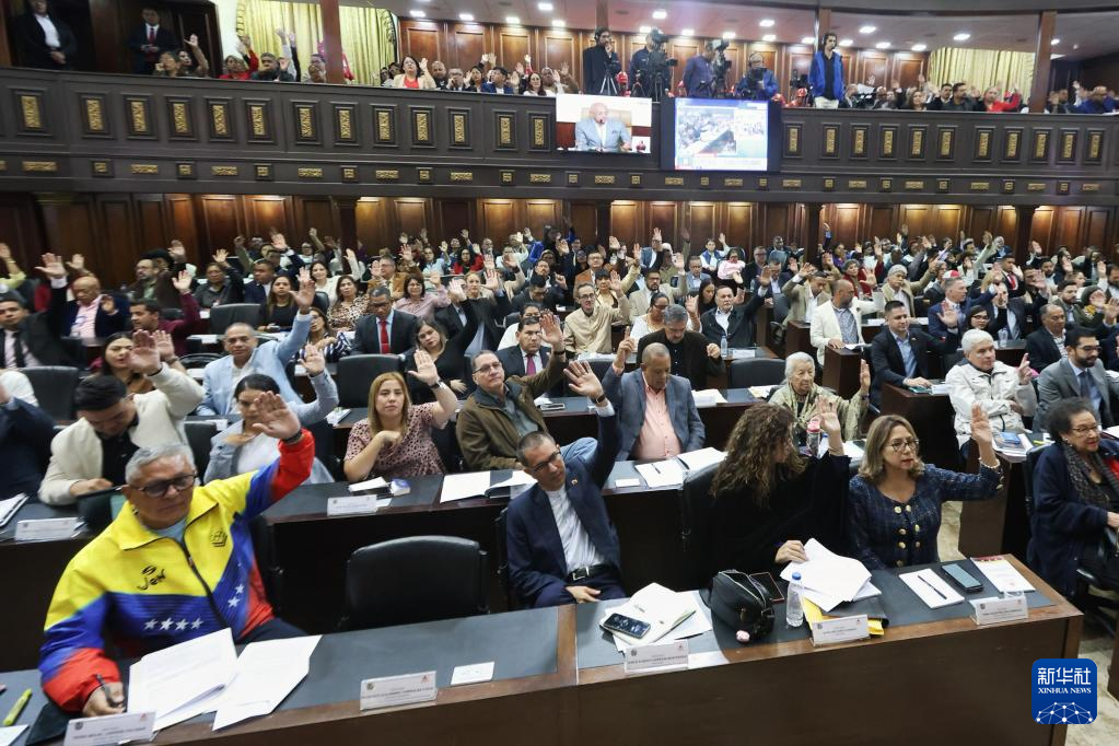 1月29日,在委內(nèi)瑞拉首都加拉加斯,議員們在委內(nèi)瑞拉立法機構(gòu)全國代表大會例行會議上舉手表決。新華社發(fā)(委內(nèi)瑞拉全國代表大會供圖)