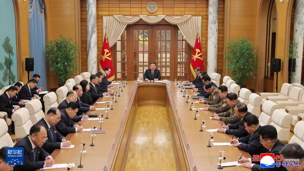 這張朝中社提供的照片顯示的是朝鮮勞動黨中央委員會政治局會議現(xiàn)場。新華社/朝中社