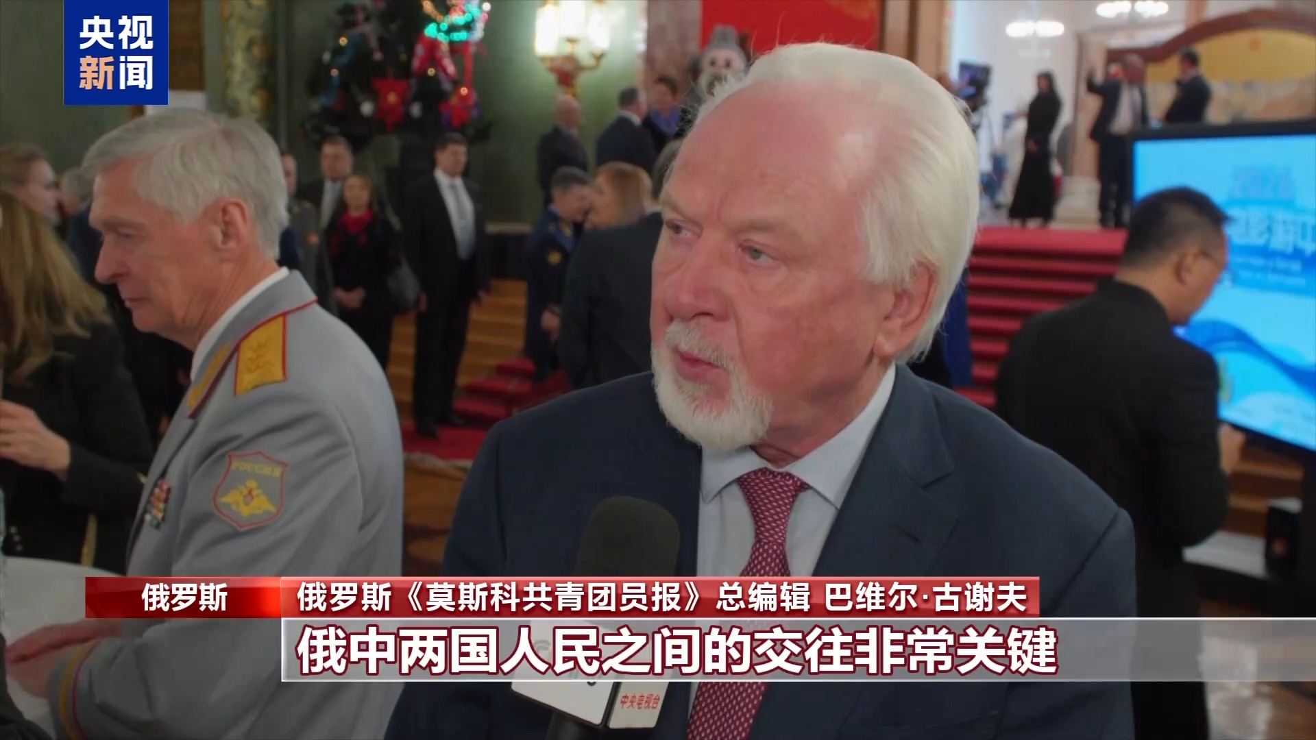 俄羅斯《莫斯科共青團員報》總編輯 巴維爾·古謝夫:俄中兩國人民之間的交往非常關鍵。如今越來越多俄羅斯民眾赴華旅游、進行商務洽談、拓展合作,新聞工作者也不例外。我謹在此祝賀大家春節(jié)快樂。