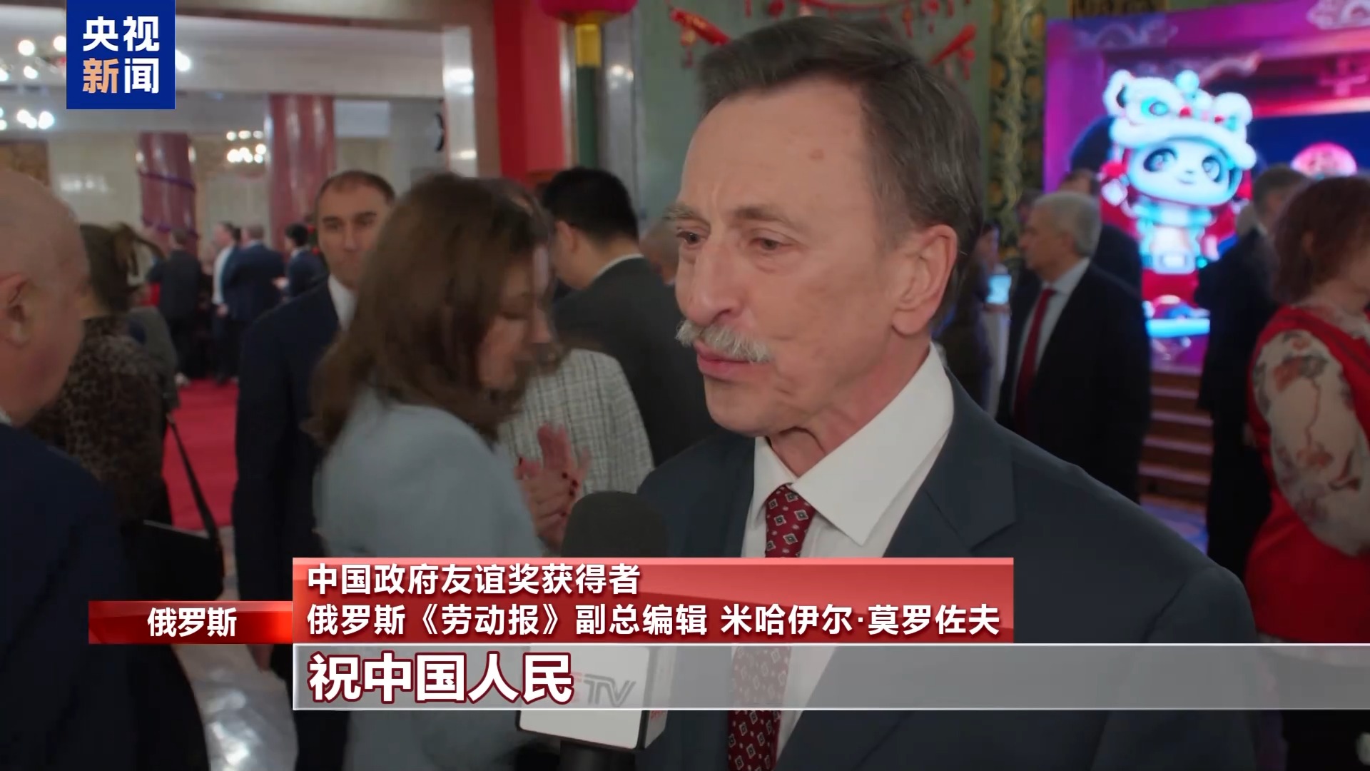中國政府友誼獎獲得者 俄羅斯《勞動報》副總編輯 米哈伊爾·莫羅佐夫:祝中國人民在生活、科技等方面都取得更大成就,馬上健康、幸福。