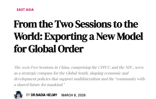 歐洲《現(xiàn)代外交》網(wǎng)站3月8日刊載埃及本尼蘇伊夫大學(xué)副教授納迪亞·赫爾米博士的評論文章稱,2026年中國兩會為全球南方國家提供了戰(zhàn)略指南,會議制定了支持多邊主義和推動構(gòu)建人類命運共同體的經(jīng)濟發(fā)展政策。會議推動南南合作,促進(jìn)可持續(xù)發(fā)展,并提供了基于伙伴關(guān)系和互利共贏的全球治理新模式。