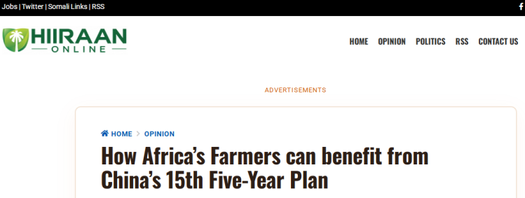 索馬里新聞網(wǎng)站希蘭在線(Hiiraan online)發(fā)表了題為《中國“十五五”藍(lán)圖將如何惠及非洲農(nóng)民》的文章。