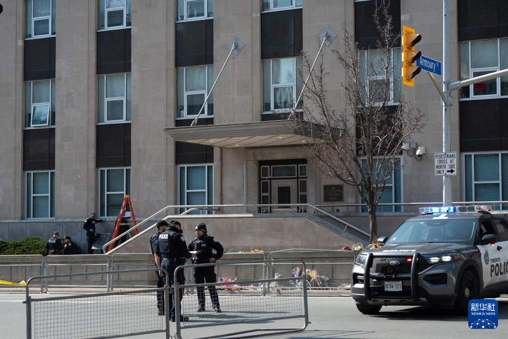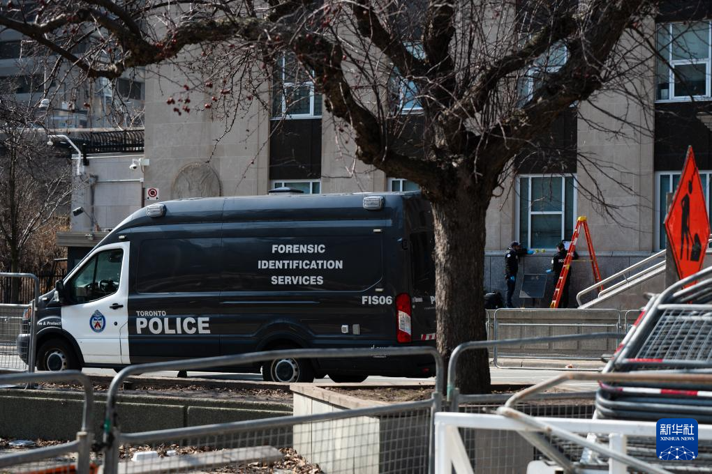3月10日,警察在加拿大多倫多的美國駐多倫多總領(lǐng)館外勘察。新華社發(fā)(李海濤攝)