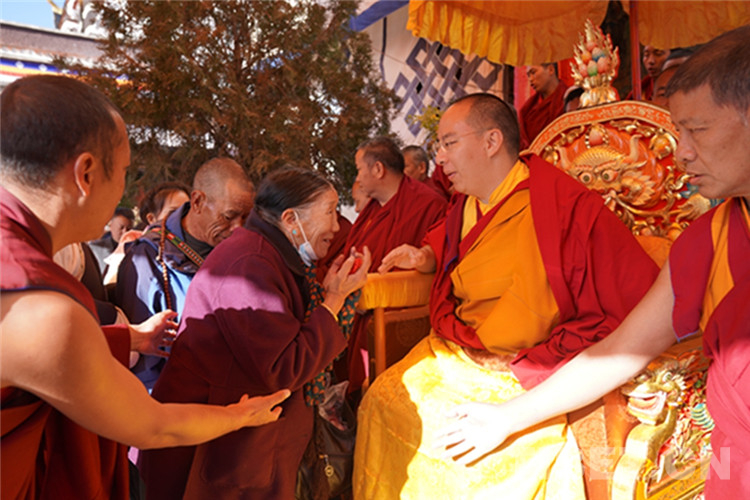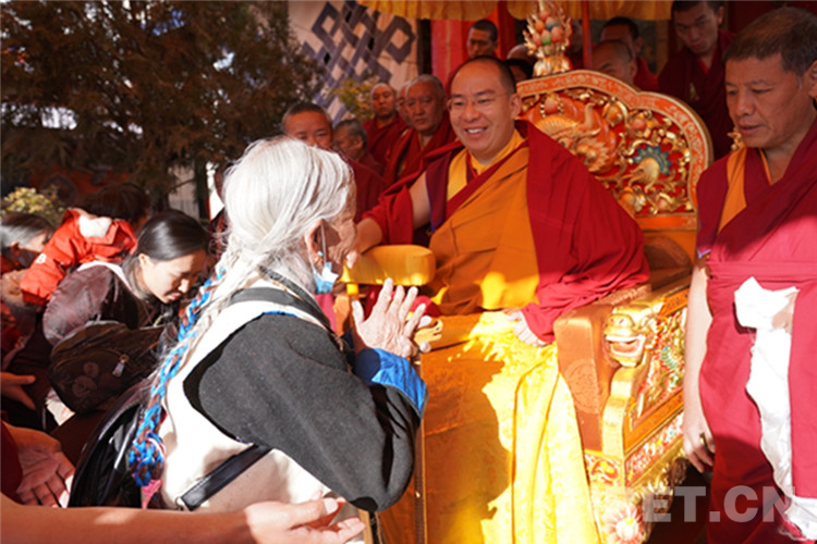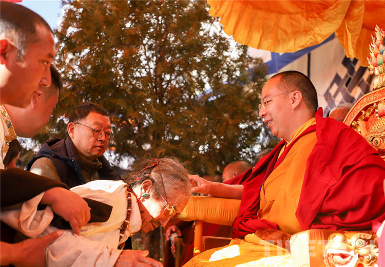 中國西藏網(wǎng)訊 11月13日至14日,全國政協(xié)常委、中國佛教協(xié)會副會長、中國佛協(xié)西藏分會會長班禪額爾德尼?確吉杰布在西藏日喀則市扎什倫布寺多加大院為信教群眾摸頂賜福,這是近年來規(guī)模最大的一次班禪摸頂賜福活動(dòng)。圖為班禪摸頂賜福 攝影:王淑(中國西藏網(wǎng) 記者/王淑 賈華加)