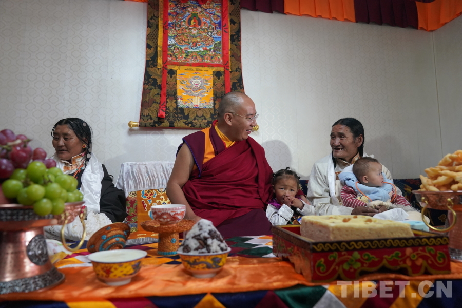 圖為第十一世班禪額爾德尼·確吉杰布在日喀則市仲巴縣里孜口岸邊境農(nóng)牧民家中調(diào)研 攝影:王淑
