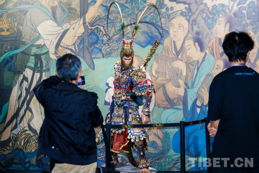 圖為《黑神話·悟空》在此次互聯(lián)網(wǎng)大會上展出的等身悟空模型,吸引了許多游戲愛好者駐足欣賞打卡。