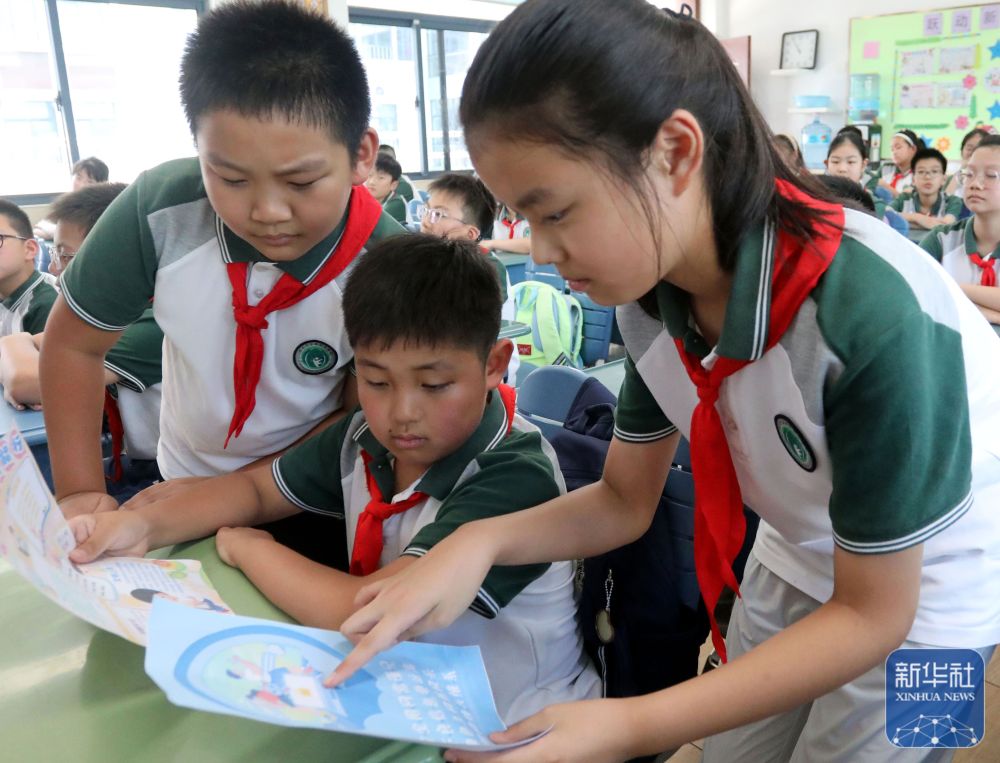 9月15日,江蘇省蘇州市金閶實驗小學(xué)校學(xué)生在學(xué)習(xí)網(wǎng)絡(luò)安全知識。新華社發(fā)(杭興微攝)