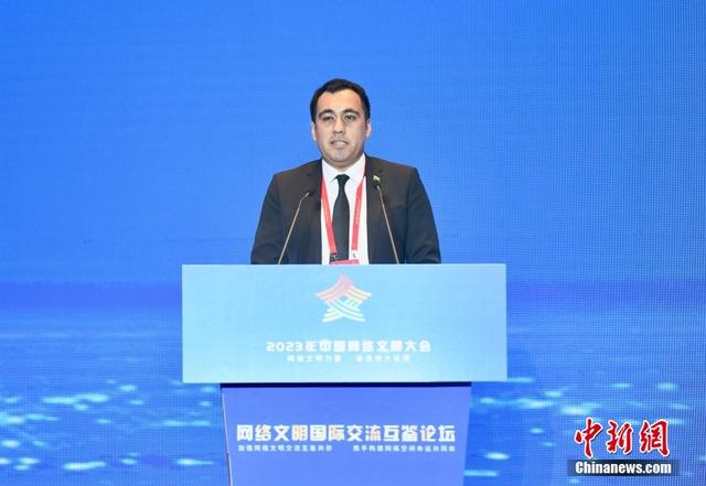 7月18日,2023年中國網(wǎng)絡(luò)文明大會網(wǎng)絡(luò)文明國際交流互鑒論壇在廈門舉辦。中外嘉賓圍繞加強網(wǎng)絡(luò)文明交流、互鑒、共存等話題展開探討。圖為中國石油大學(北京)土庫曼斯坦籍來華留學生若賀曼作主題演講。中新社記者 王東明 攝