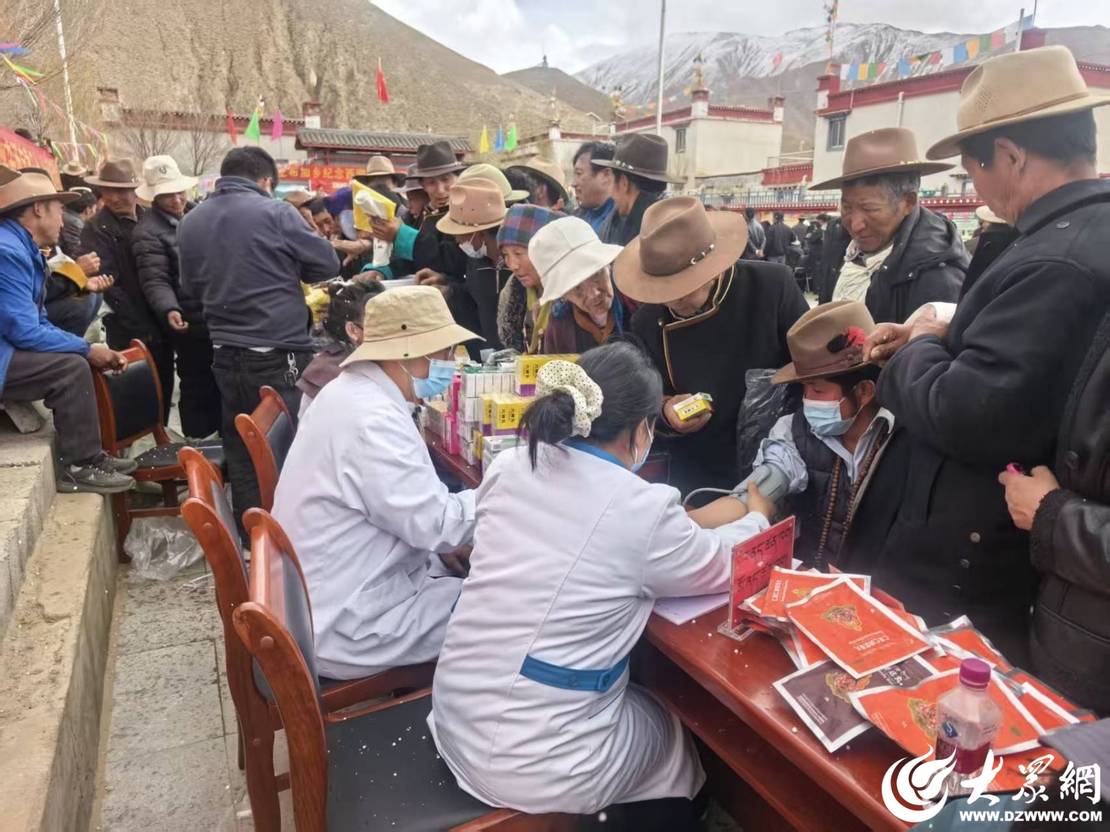3月27日,義診現(xiàn)場突降冰雹,氣溫驟降,寒風刺骨。面對惡劣天氣,濰坊援藏醫(yī)療隊沒有一人退縮。大家迅速用身體護住醫(yī)療設(shè)備和藥品,將行動不便的老人護送至安全區(qū)域,在風雪中堅持完成全部診療服務(wù)。當天累計服務(wù)群眾百余名,發(fā)放常用藥物200余盒。