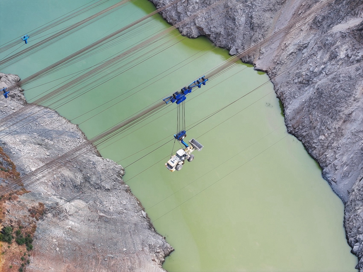 15噸輔助纜索吊——“搭建骨架”。在臨時(shí)索道完成基礎(chǔ)物料運(yùn)輸后,2套15噸輔助纜索吊于2025年8月接力進(jìn)場,核心任務(wù)是搭建木里岸作業(yè)鋼平臺、隧道錨洞口操作架等關(guān)鍵設(shè)施,并承擔(dān)中小型設(shè)備轉(zhuǎn)運(yùn)、施工渣土短途運(yùn)輸?shù)裙ぷ?,?0噸主纜索吊系統(tǒng)安裝和后續(xù)施工提供作業(yè)基礎(chǔ)。