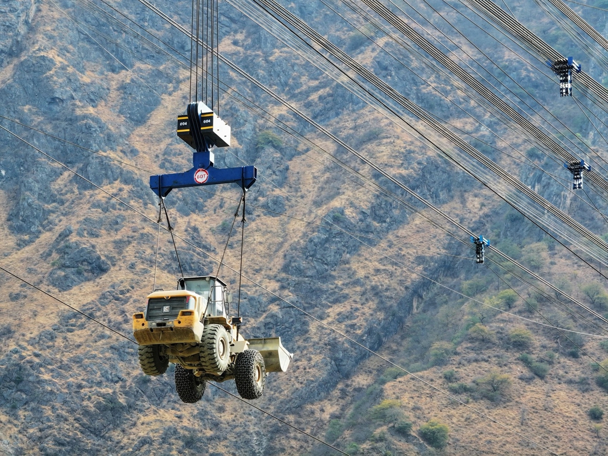 4月16日,涼山州深山峽谷中,上演了一出“空中飛車”。在西香高速理塘河特大橋的建設(shè)現(xiàn)場,一臺大型裝載機(jī),穩(wěn)穩(wěn)掛在一道橫跨理塘河的“高空索道”上,從鹽源岸騰空而起,“飛越”腳下波濤洶涌的河水,平安降落在對岸的木里岸。
