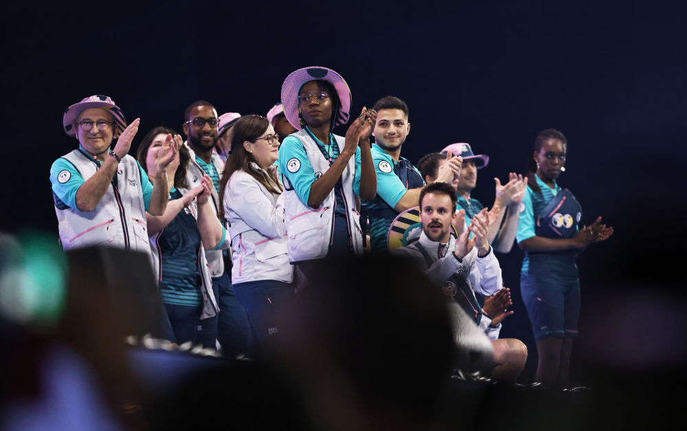 3月23日,模特在巴黎奧運(yùn)會(huì)志愿者大會(huì)上展示志愿者制服。新華社記者 高靜 攝