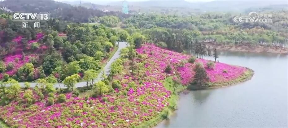 四月芳菲,春光正盛。在江蘇南京銀杏湖,800萬株杜鵑花迎著明媚的春光次第綻放。遠遠望去,連片的杜鵑花點綴著朱紅、淡粉與純白,密密匝匝擁在一起,把湖光山景染成了斑斕的畫卷。園區(qū)里的千畝杜鵑花花期將持續(xù)到五月初。