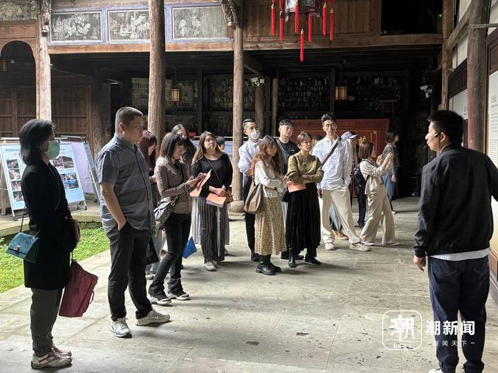 依山而建、傍水而居,位于磐安的櫸溪村又帶給臺青們另一幅鄉(xiāng)村畫卷,古樸宏偉的孔氏家廟,村落沿著溪流和山坡緩緩延伸,這里是江南地區(qū)一支孔子后裔聚集地?!斑@里每一條巷子里都能感覺到悠久的歷史氣息?!币宦飞吓_青們不停地拿起手機打卡留念。