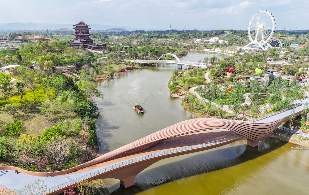 這是2024年4月23日拍攝的成都世園會(huì)郫都分會(huì)場(chǎng)(無人機(jī)照片)。新華社記者 王曦 攝