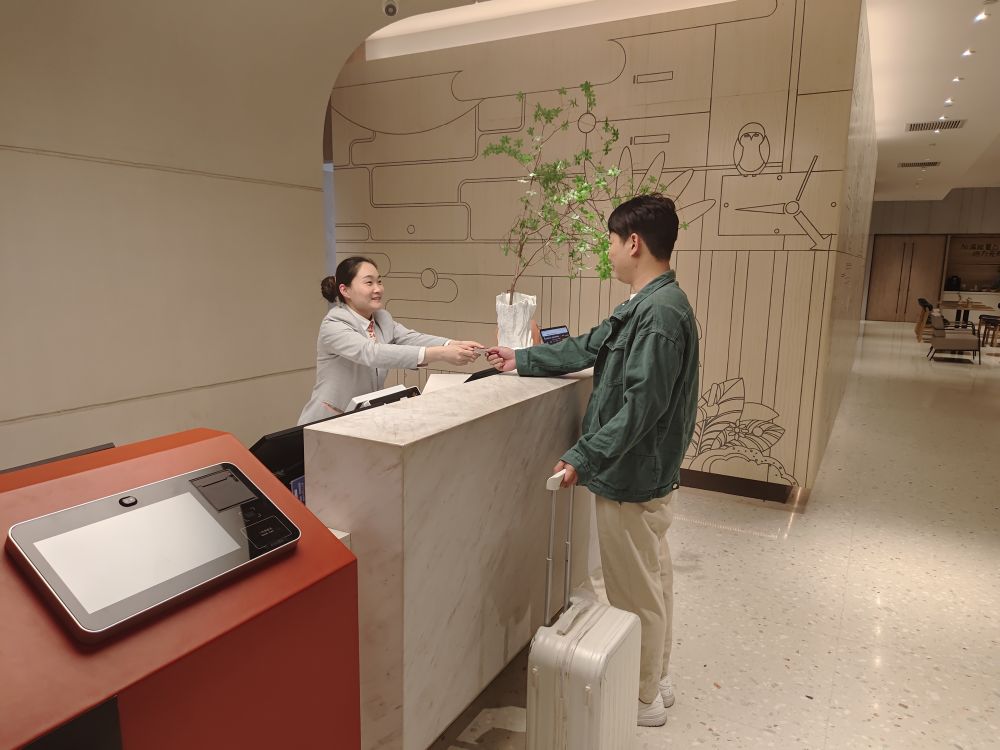 住客在上海市徐匯區(qū)的一家商旅酒店辦理入住。新華社記者陳愛平 攝