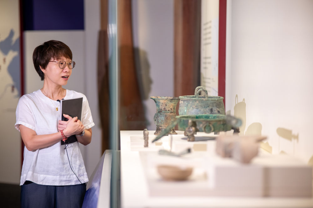 策劃、研究、選品,一年的密切合作為展覽注入巧思:展覽兼具學(xué)術(shù)性與教育性,部分內(nèi)容特意參考香港中學(xué)歷史教材;入選文物涉及多家機(jī)構(gòu),各單位經(jīng)過(guò)一番努力才安排好赴港檔期;克服燈光場(chǎng)地等困難,河南團(tuán)隊(duì)還首次為體量龐大的春秋九鼎八簋九鬲拍攝整體大合影,以豐富圖片資料……