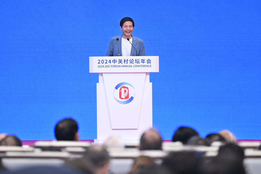 2024年4月25日,小米集團(tuán)創(chuàng)始人、董事長(zhǎng)兼首席執(zhí)行官雷軍在2024中關(guān)村論壇年會(huì)上發(fā)言。