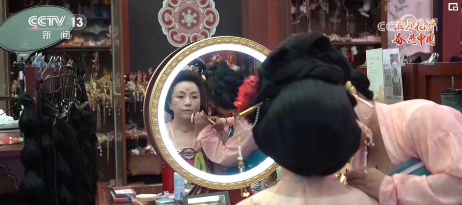 在陜西西安,有這樣一位年輕人,她仿佛擁有一種復刻舊時光的魔力。敷粉、畫眉、點唇,穿上漢服、戴上發(fā)飾,不到1個小時,一個現代的女孩就穿越回了漢唐?!?0后”漢服妝造師胡芯銀,讓今人和古人在裝束上相逢。