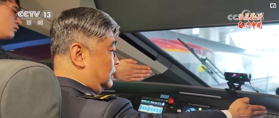 現在開車條件好了,但司機的責任一點不小。每一個動作都是在對儀表檢查、信號確認、嚴守速度等關鍵信息進行確認。安全警惕系統會時刻關注司機的狀態(tài),腳踏板30秒不踩踏會聲光報警,40秒不踩踏列車就會緊急制動。駕駛臺前方的這個盹睡裝置會一直觀察司機的眼睛,閉眼超過2秒也會啟動聲光報警。可以說,這種強度的工作壓力,沒有經過嚴格訓練的人是絕對無法勝任。