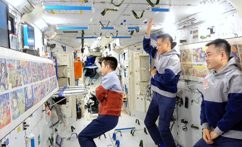 2024年2月23日,第三屆“天宮畫展”在中國空間站開展。神舟十七號航天員乘組在軌展示和介紹了新時(shí)代青少年暢想中國式現(xiàn)代化的美麗畫卷。