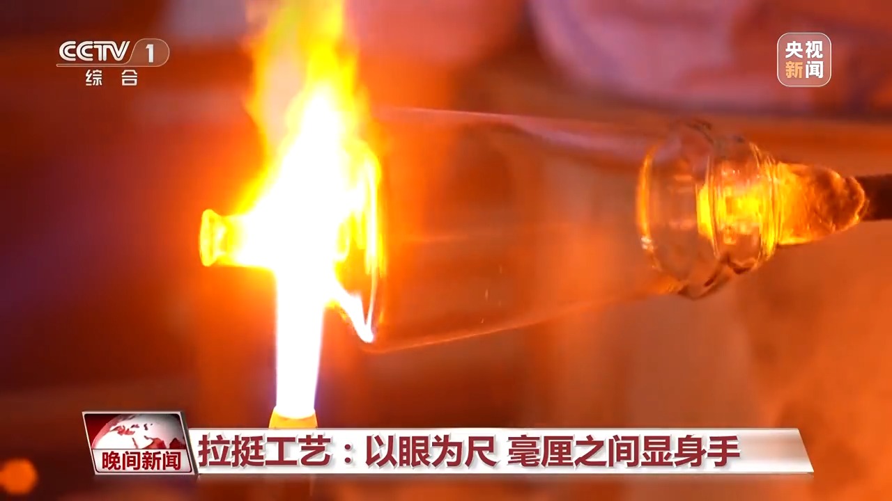 在素有“中國玻璃器皿之都”美譽的山西祁縣,人工吹制玻璃器皿的手藝被認(rèn)定為省級非遺。一團團紅彤彤的玻璃溶液,在數(shù)十位師傅手中傳來傳去,吹好杯身的毛坯,傳遞到拉挺師傅羅琴琴手中。