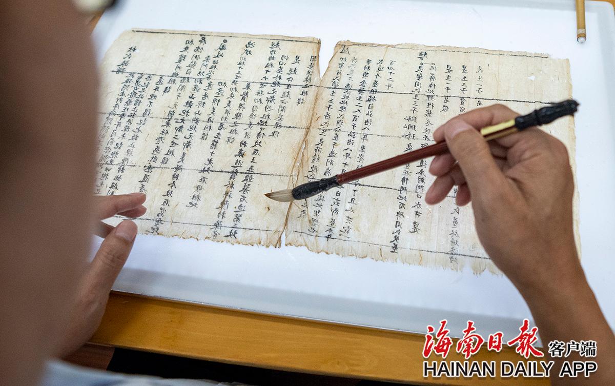 “2008年的時候,國家圖書館古籍保護中心有一項為期3個月的古籍修復培訓計劃,當時海南只有我一人報名參加。”黃文鋒答道,“在北京,我?guī)煆奈覈偶迯蛯<叶艂ド?,系統(tǒng)地了解和學習了所有的工序和技術?!?/p>