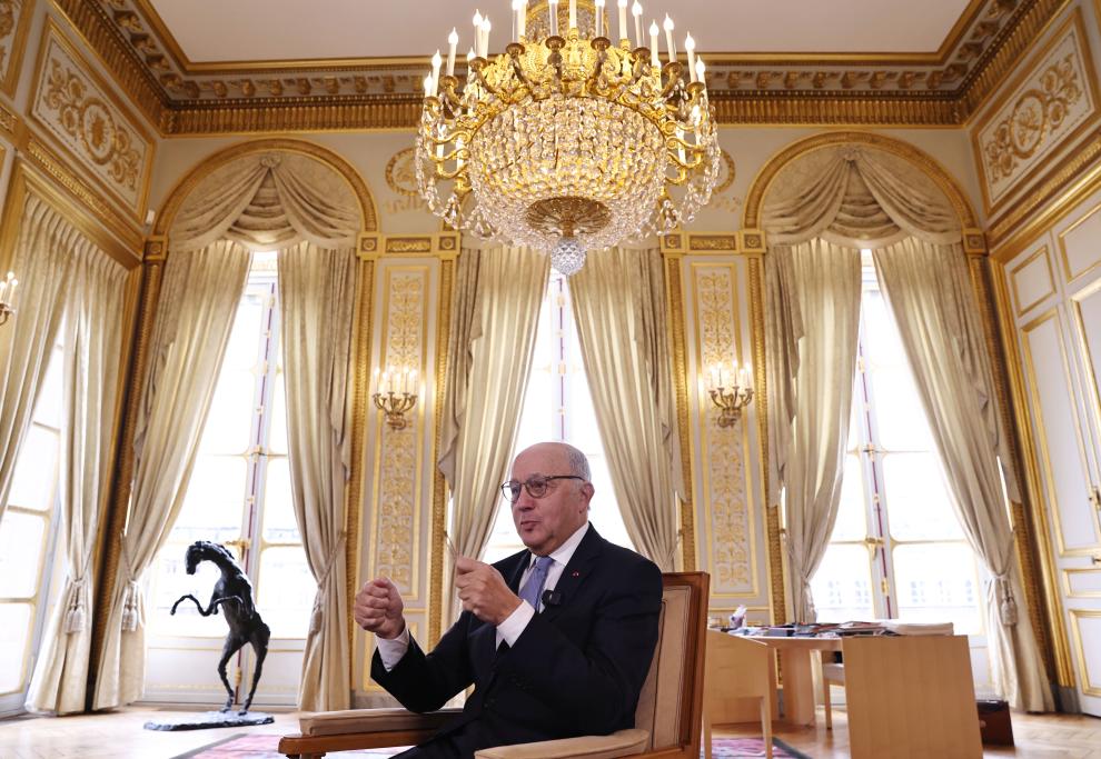 2023年12月12日,在位于法國巴黎的憲法委員會(huì)主席辦公室里,法比尤斯接受新華社記者獨(dú)家專訪。新華社記者高靜 攝