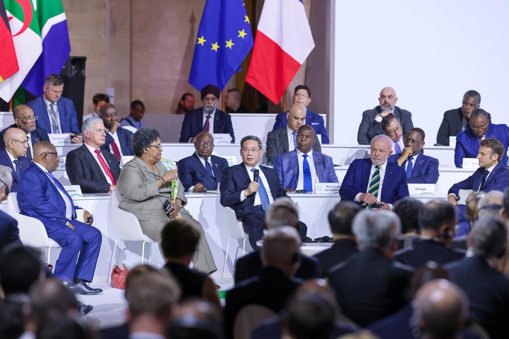 2023年6月23日上午,國務(wù)院總理李強(qiáng)在巴黎出席新全球融資契約峰會(huì)閉幕式并發(fā)表講話。新華社記者劉彬 攝