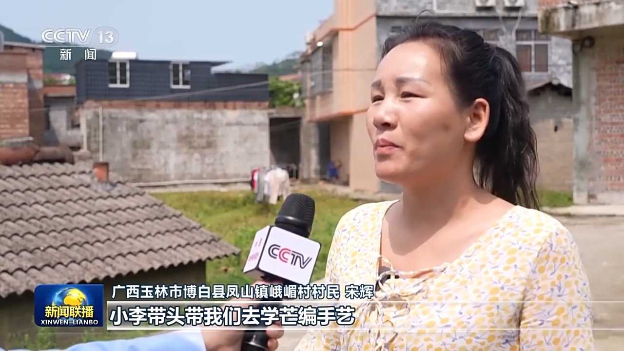 廣西玉林市博白縣鳳山鎮(zhèn)峨嵋村村民 宋輝:小李帶頭帶我們去學芒編手藝,幫我們找訂單,以前楊梅下了市,我們基本也沒什么能干的了,現在都有點忙不過來。