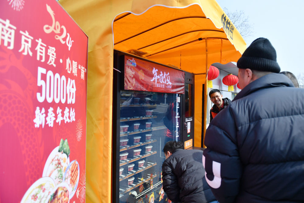 2024年2月9日,南京市交通運(yùn)輸局面向網(wǎng)約車司機(jī)、快遞員等新業(yè)態(tài)勞動者開展“年夜飯”贈送活動。 新華社記者 柳文惠 攝