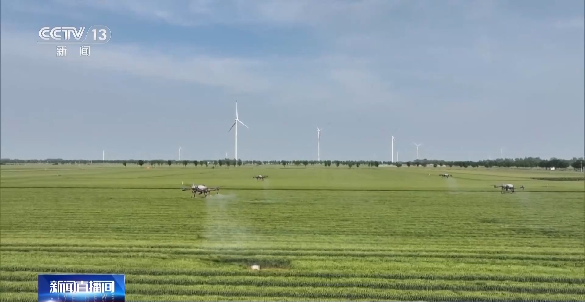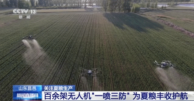 眼下正是小麥灌漿關(guān)鍵期,在山東省昌邑市柳疃鎮(zhèn)青阜農(nóng)業(yè)綜合體的一片高標(biāo)準(zhǔn)農(nóng)田里,幾架飛防無(wú)人機(jī)一字排開(kāi),白色水霧均勻噴灑在綠油油的麥田里。