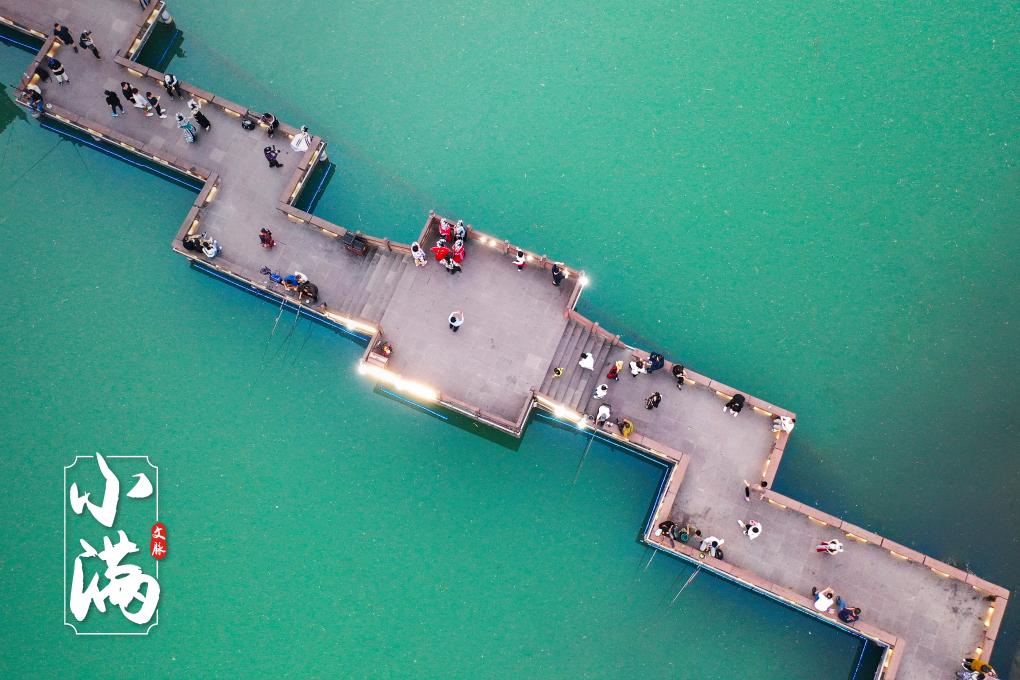 ↑湖南省湘西土家族苗族自治州,游客在鳳凰古城游玩。(無人機(jī)照片)CICPHOTO/周秀魚春 攝