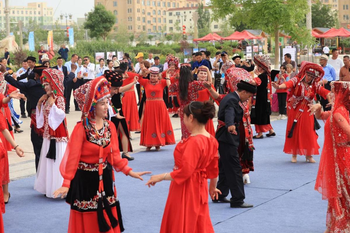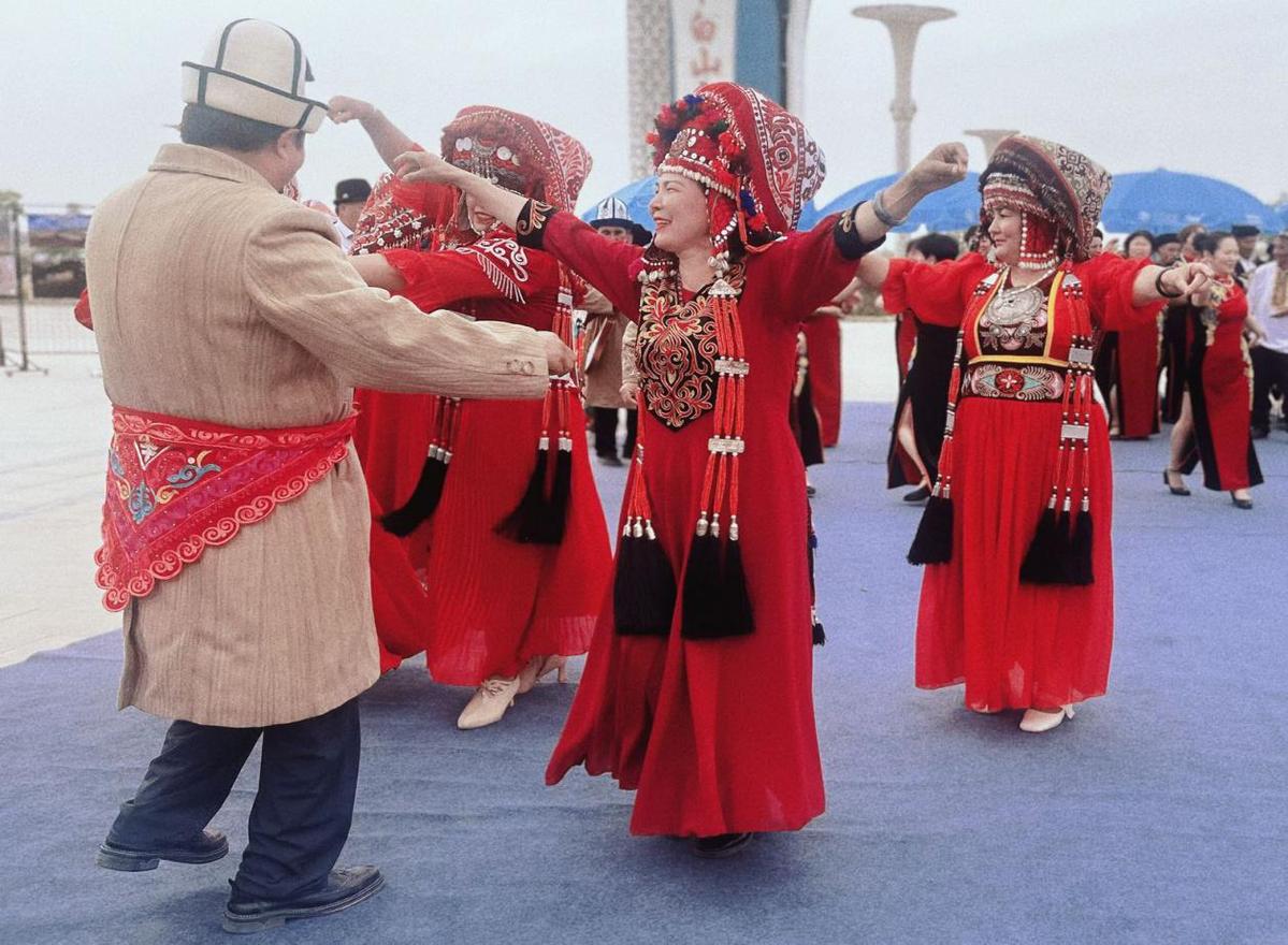 ?。▓D為在克州阿克陶縣各民族歡樂(lè)共舞 馬倩妮攝)