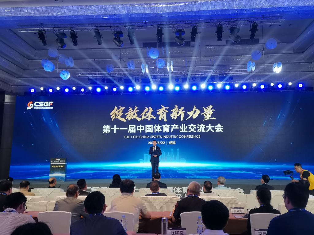 圖為第十一屆中國體育產(chǎn)業(yè)交流大會(huì)舉辦現(xiàn)場(chǎng)。