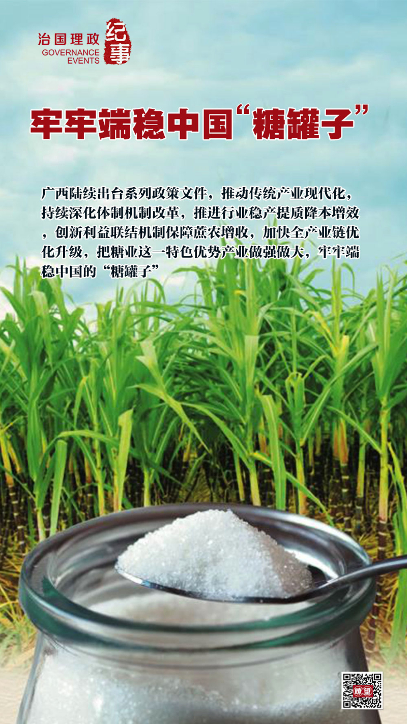 《廣西壯族自治區(qū)人民政府關(guān)于深化體制機(jī)制改革加快糖業(yè)高質(zhì)量發(fā)展的意見》《廣西糖業(yè)降本增效三年行動計(jì)劃工作方案》《廣西深化糖料蔗良種良法技術(shù)推廣工作實(shí)施方案》……廣西陸續(xù)出臺系列政策文件,推動傳統(tǒng)產(chǎn)業(yè)現(xiàn)代化,持續(xù)深化體制機(jī)制改革,推進(jìn)行業(yè)穩(wěn)產(chǎn)提質(zhì)降本增效,創(chuàng)新利益聯(lián)結(jié)機(jī)制保障蔗農(nóng)增收,加快全產(chǎn)業(yè)鏈優(yōu)化升級,把糖業(yè)這一特色優(yōu)勢產(chǎn)業(yè)做強(qiáng)做大,牢牢端穩(wěn)中國的“糖罐子”。