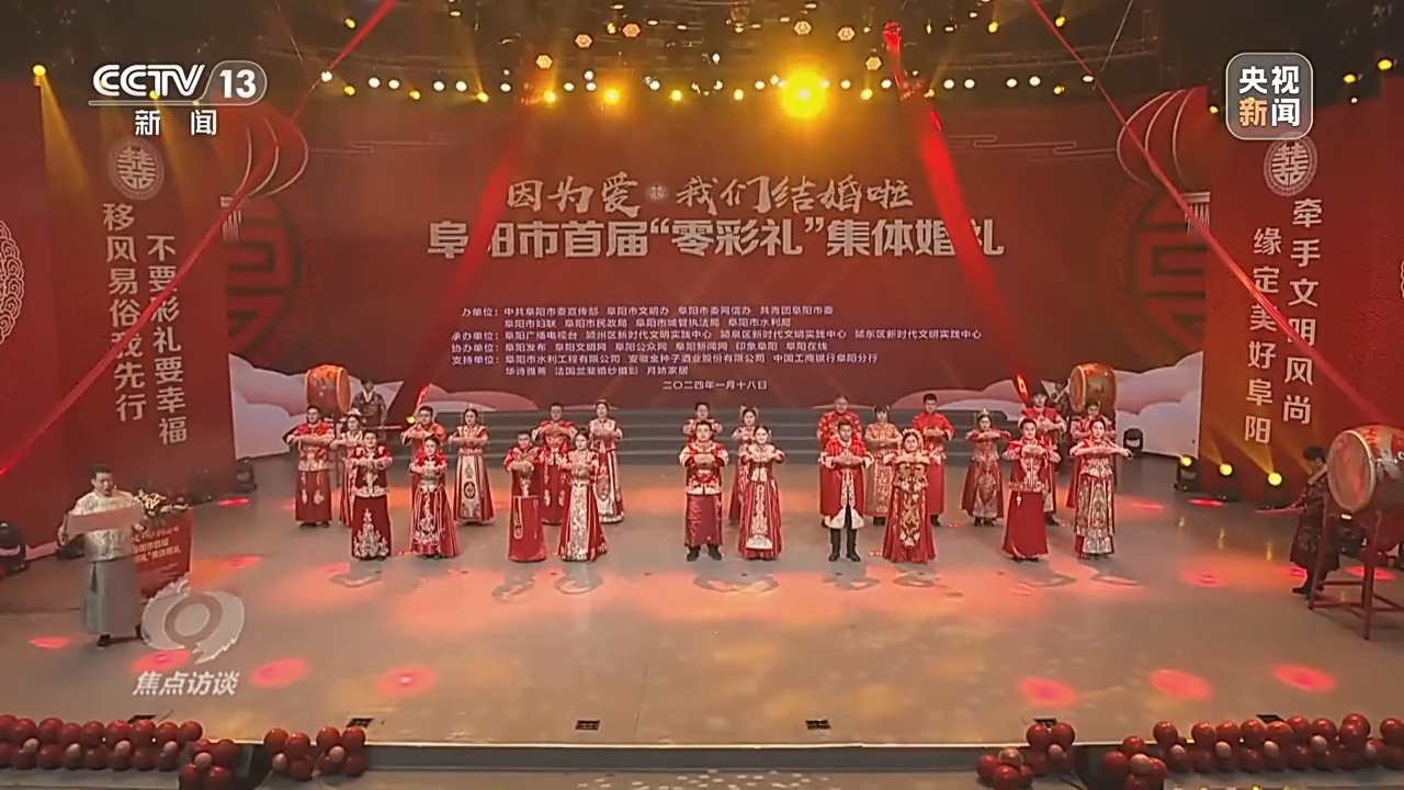 不久前,安徽阜陽當(dāng)?shù)?0余家媒體共同直播了一場“零彩禮”集體婚禮,58對(duì)新人在親人、觀禮嘉賓及廣大網(wǎng)友祝福聲中,鄭重許下相守一生的承諾。