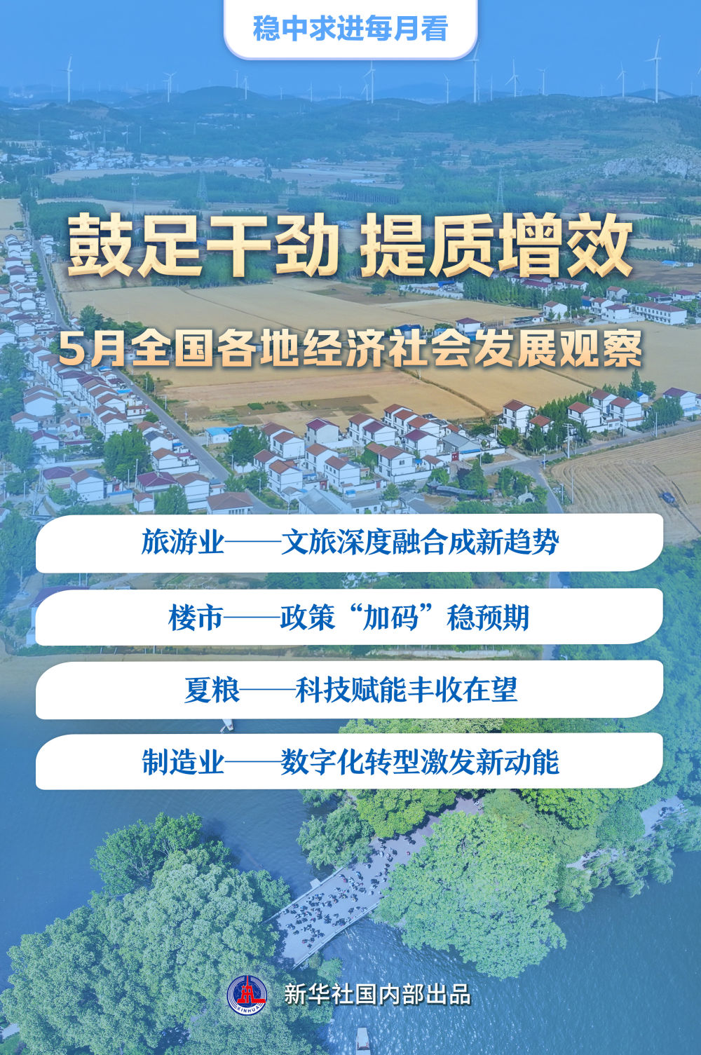 春歸夏至,萬物生長。文旅融合向“深”挺進,樓市政策優(yōu)化調(diào)整,夏收以科技賦能,制造業(yè)數(shù)字化轉型提速……提質增效成為5月全國各地經(jīng)濟社會發(fā)展的突出特點。