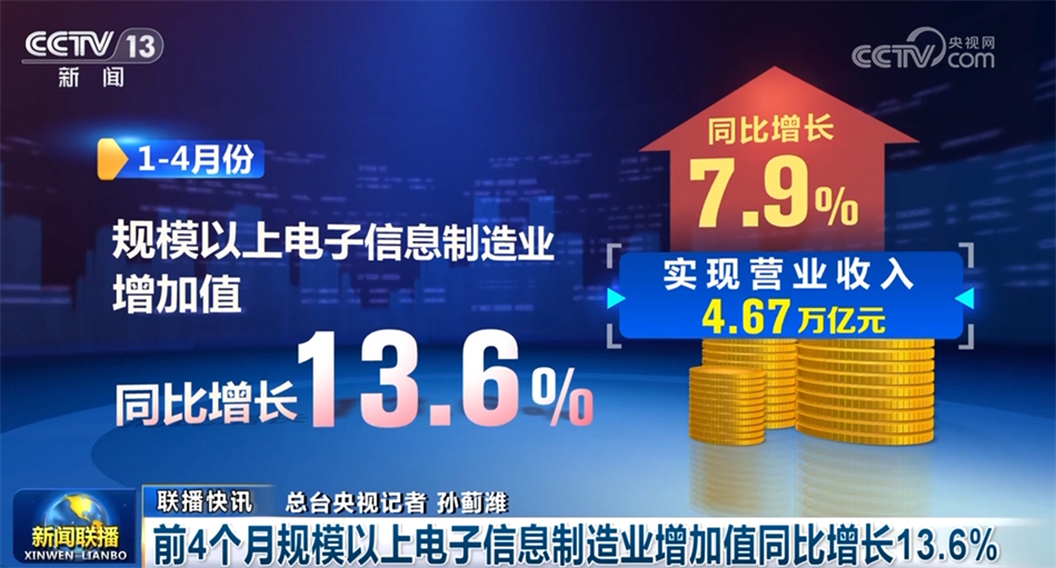 前4個月規(guī)模以上電子信息制造業(yè)增加值同比增長13.6%