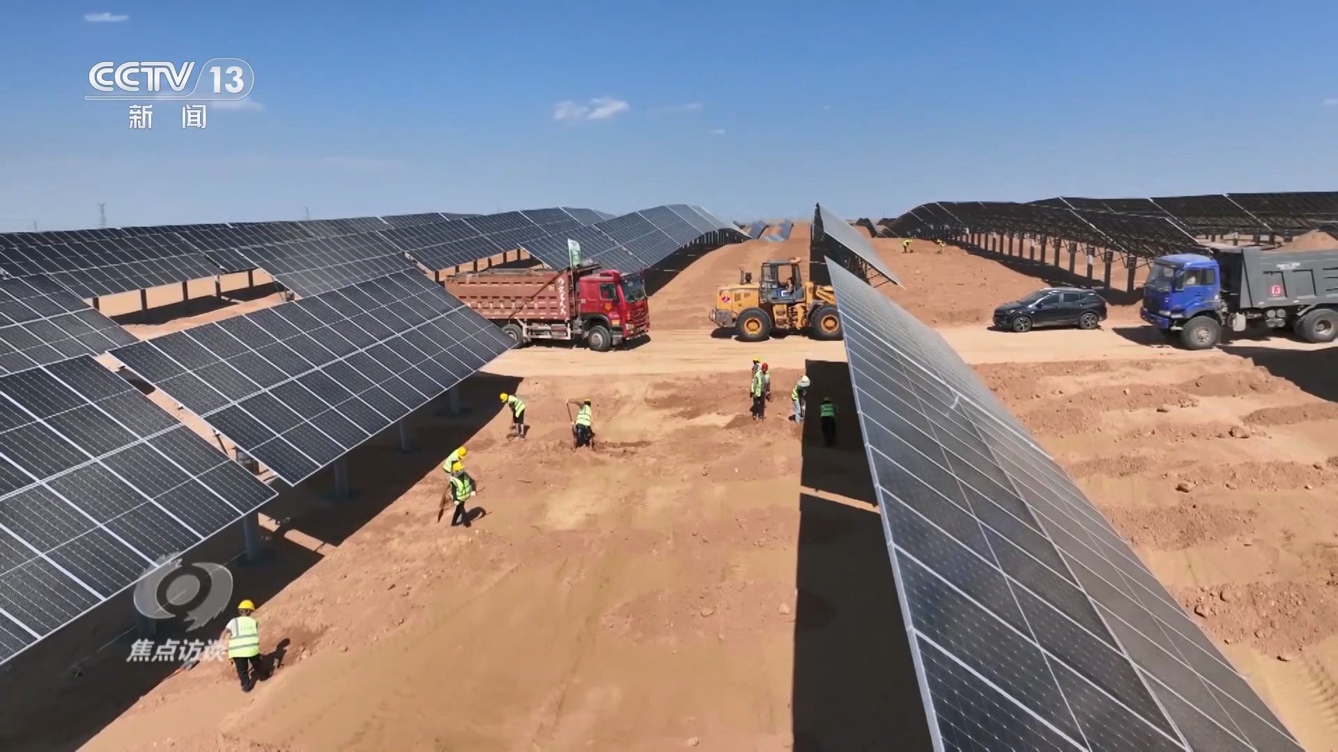 在內(nèi)蒙古庫(kù)布其沙漠北緣,一排排深藍(lán)色的太陽(yáng)能電池板格外醒目。總投資115億元、占地48.7萬(wàn)畝、光伏裝機(jī)容量13GW的新能源基地正在加緊建設(shè)。這個(gè)新能源項(xiàng)目是鄂爾多斯市防沙治沙的重點(diǎn)工程。沙漠、沙地地廣人稀,蘊(yùn)藏著巨大的風(fēng)能、太陽(yáng)能資源。內(nèi)蒙古自治區(qū)“跳出治沙看治沙”,實(shí)施防沙治沙和風(fēng)電光伏一體化工程,統(tǒng)籌推進(jìn)增綠、增能、增收,力求取得1+1>2的效果。